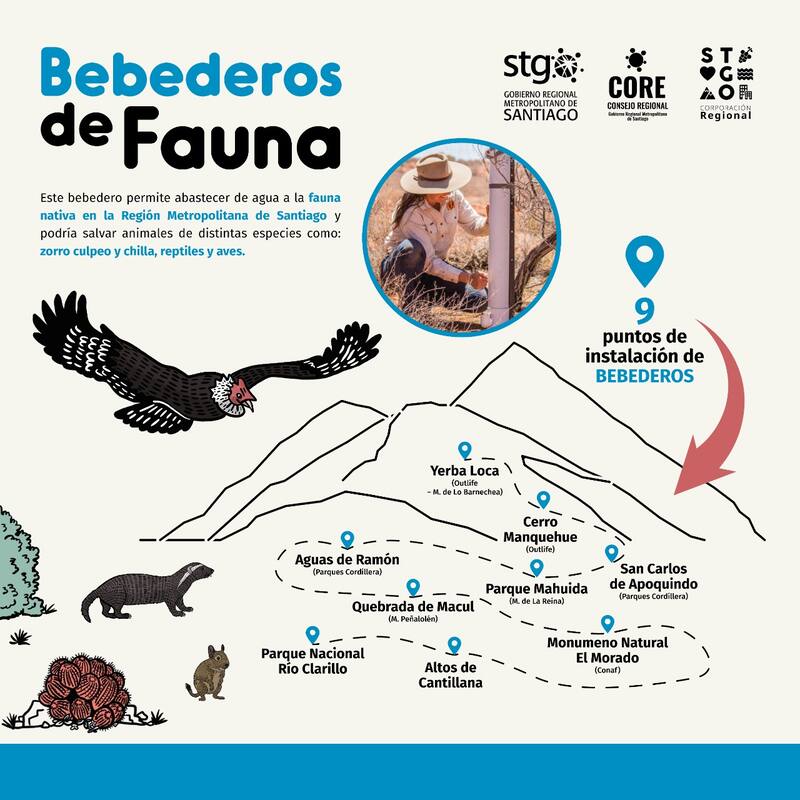 Los bebederos permitirían abastecer de agua a la fauna nativa en la Región Metropolitana de Santiago y podría salvar animales de distintas especies como zorro culpeo y chilla, reptiles y aves.