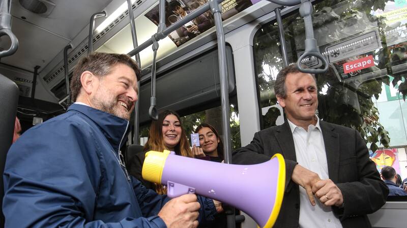 El gobernador de la RM, Claudio Orrego, acompañado del ministro de Transporte, Juan Carlos Muñoz, realizó el lanzamiento oficial de la iniciativa, que busca el fortalecimiento de las policías, aumentar las penas y potenciar los canales de orientación y denuncia.