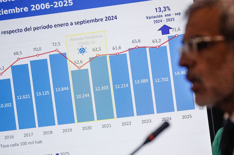 En este grupo de delitos se encuentran los robos con violencia o intimidación, que caen un 12,4%, al igual que los robos violentos de vehículos (portonazos, encerronas) que disminuyen un 11,3% respecto a 2024. En ese grupo, el único ilícito que sube son los robos por sorpresa (lanzazos, turbazos o motochorros), los que aumentan un 1,2% respecto al año pasado.