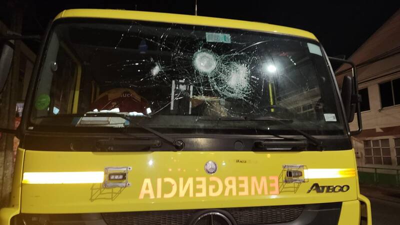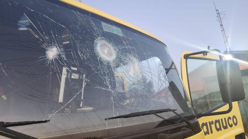 Cerca de las dos de la madrugrada, la brigada a cargo de la empresa maderera Arauco, fue atacada por cuatro sujetos, que lanzaron objetos contundentes en contra del carro bomba, rompiendo el parabrisa del vehículo.