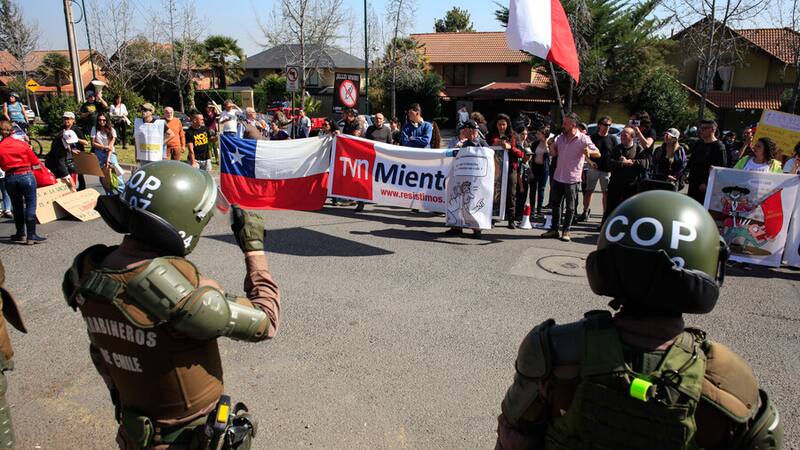 Tras algunos minutos, un contingente de cuatro patrullas de Carabineros, más un carro lanza gases, concurrió al lugar para contener la protesta y resguardar la propiedad de la autoridad, aunque no fue dispersada la manifestación. Pese a ello, fuentes policiales indicaron que no se registraron personas detenidas ni tampoco se hizo uso de la fuerza.