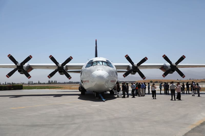El avión, que será el de mayor envergadura que dispondrá Conaf para la temporada 2022-2023, tiene una capacidad de 15 mil litros de agua y una autonomía de vuelo de 8 horas.