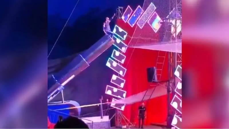 El espectáculo consistía en el lanzamiento del artista circense desde un cañón, para posteriormente caer en una malla de seguridad, no obstante, al salir eyectado, el acróbata terminó traspasando esta, cayendo de manera violenta en el suelo.