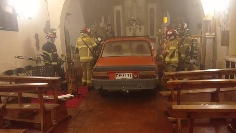 En la noche del lunes, un auto irrumpió en el altar mayor de la parroquia Nuestra Señora de la Merced, emplazada en la localidad de Zúñiga en la comuna de San Vicente de Tagua Tagua, Región de O’Higgins.