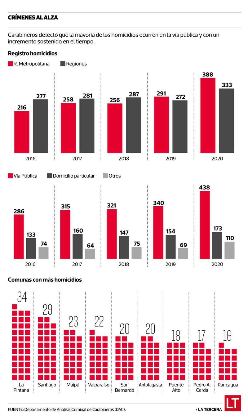 Para el gobierno es prioritario atacar el fenómeno del manejo de armas y el del crimen organizado para este 2021, pues el año pasado, según un estudio del Departamento de Análisis Criminal de Carabineros (DAC), dejó un saldo de 721 homicidios, el número más alto de casos en estos últimos cinco años.