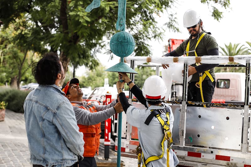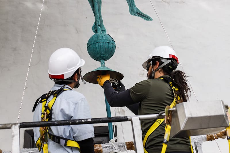 Posteriormente, por dentro se le instaló un extremo, que es como una pata de bronce, “que se le pone al final del vástago para que pueda girar bien en una base de bronce que está instalada también dentro de la cúpula”, agrega.