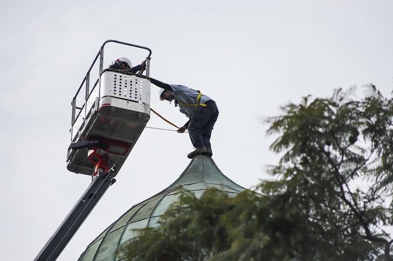 Con la mirada fija en la iglesia, la grúa y las veletas, Standen explicó que “lo que hicimos fue levantar la primera veleta y con eso entender cómo funcionaba el brazo mecánico respecto a su propia geometría, y también cómo funcionaba el peso de ésta para manejarla arriba. Fue básicamente probar en terreno cómo funcionaba el brazo de la veleta”, sostuvo.