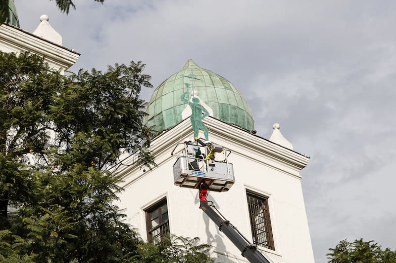 Por Carlos MontesIglesia Los Dominicos recupera puertas y veletas luego del temporal de 2025 y rayado de grafitis