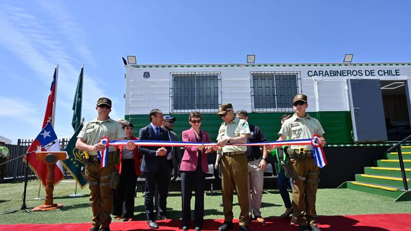La vicepresidenta de la República, Carolina Tohá, encabezó hoy la inauguración de la 74ª Comisaría transitoria en la Villa de los Juegos Panamericanos y Parapanamericanos Santiago 2023, ubicada en el Parque Bicentenario, comuna de Cerrillos.
