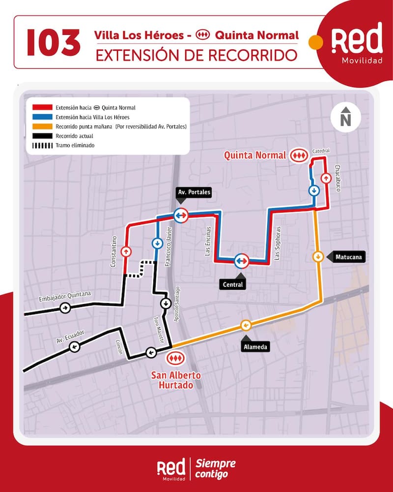 A esto se suma una modificación para el servicio I03, que ampliará su trazado hacia el Metro Quinta Normal, ingresando además al interior de Villa Portales, mejorando los traslados de vecinos y vecinas del conjunto habitacional de Estación Central.