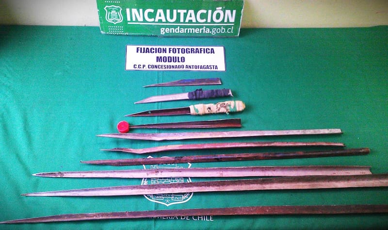 Incautan armas blancas de fabricación artesanal y celulares en operativo realizado cinco cárceles de Antofagasta