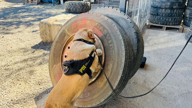 En el operativo participó la Brigada de Adiestramiento Canino (Briacan) de la PDI, en donde uno de sus ejemplares logró identificar la droga oculta en las ruedas de repuesto del vehículo.