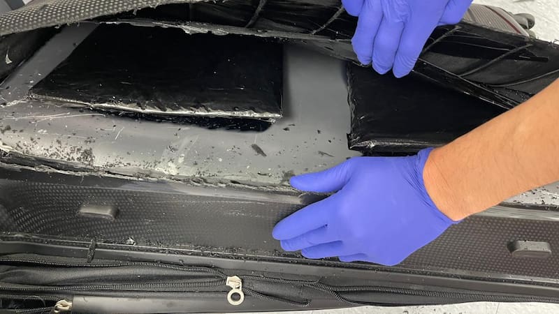 Al momento de la inspección es que encontraron que tenía una maleta de doble fondo donde trasladaba 5 kilos y medio de MDMA, droga sintética popularmente conocida como éxtasis. Además contaba con 13 mil euros en efectivo.
