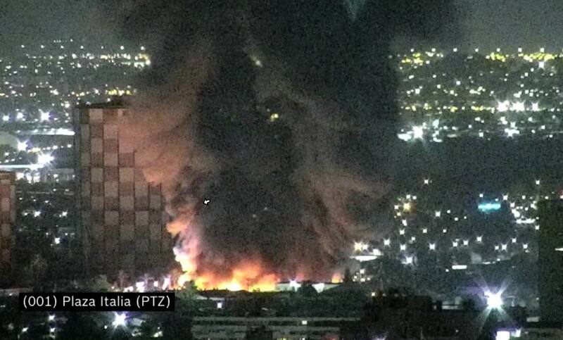Momentos después, el comandante del Cuerpo de Bomberos de Santiago, Giorgio Tromben informó que “por el momento tenemos (afectados) tres locales comerciales que se utilizan como bodega principalmente de textiles y también de artículos navideños. Tenía también propagación a una bodega de gases industriales y también hay peligro de propagación a tres casas vecinas. Estamos intentando el control de la emergencia y evitando la propagación también a estas casas”.