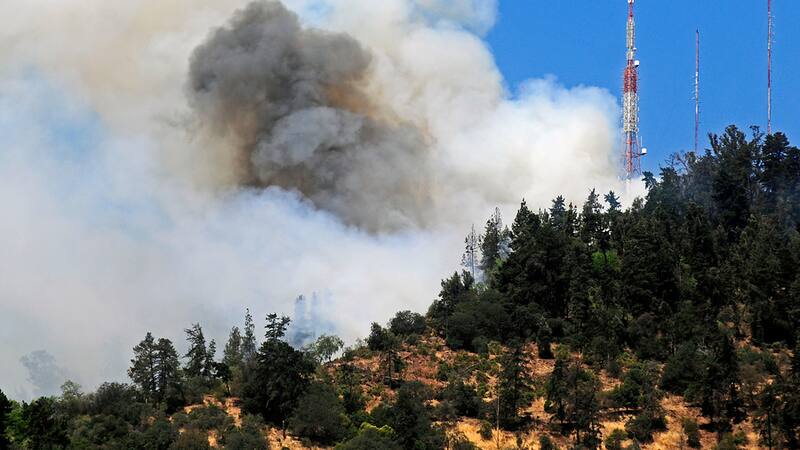 Durante la tarde del lunes, un incendio afectó la ladera norte del Parque Metropolitano del Cerro San Cristóbal.