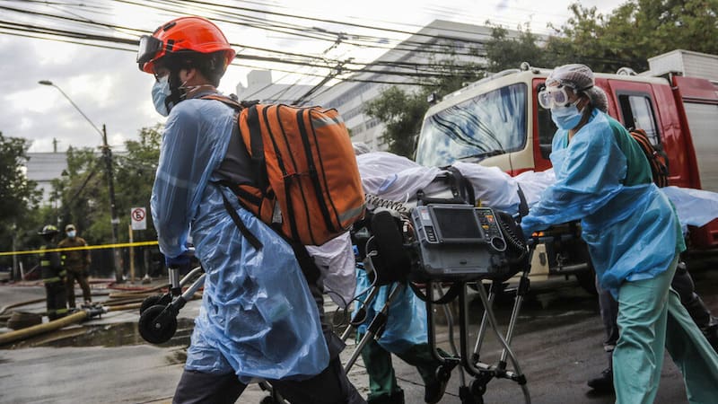 Un incendio afectó esta mañana al Hospital San Borja, en la comuna de Santiago. La emergencia obligó la evacuación de 350 pacientes, 28 de ellos internados por coronavirus.