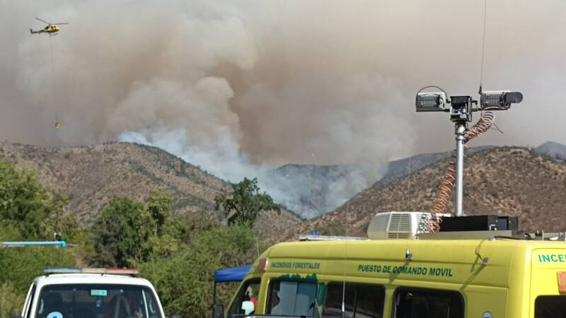 En las últimas horas las llamas cruzaron hacia la vecina comuna de Curacaví y, según informes de redes sociales, la densa nube de humo es visible desde varios puntos de la Región Metropolitana.