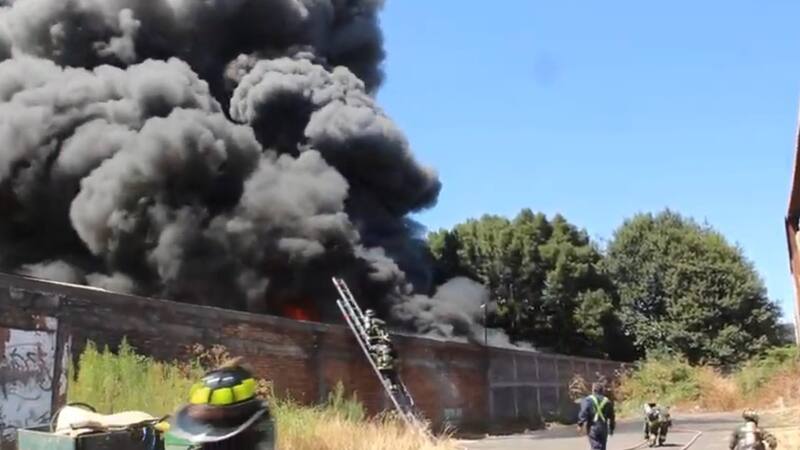 Incendio en taller de buses en Temuco deja 8 máquinas destruidas