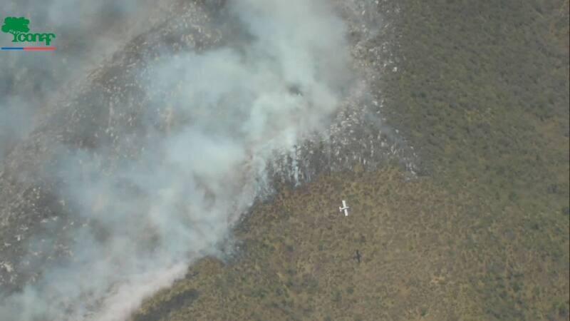 La superficie afectada por el siniestro, según información de la institución, son al menos 1.142 hectáreas y se mantiene activo por el flanco derecho con una intensidad media a alta.