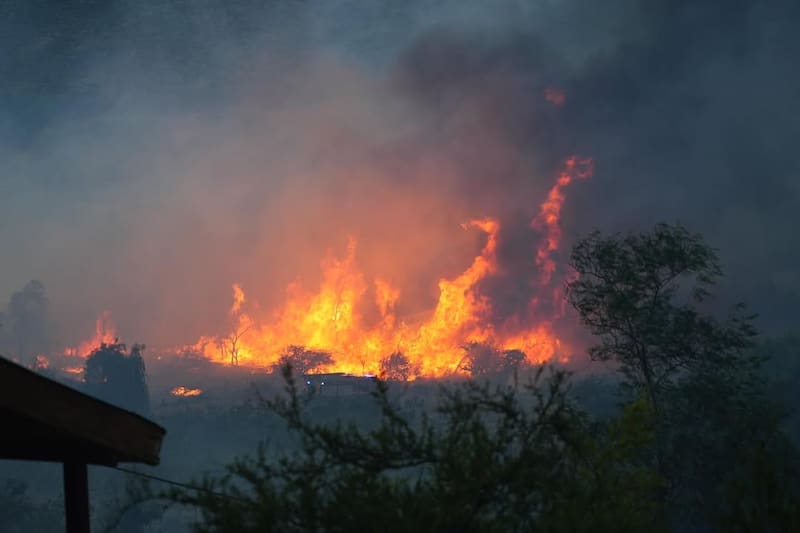 Incendio forestal en Monte Patria quemó tres viviendas y forzó la evacuación de más de 100 personas