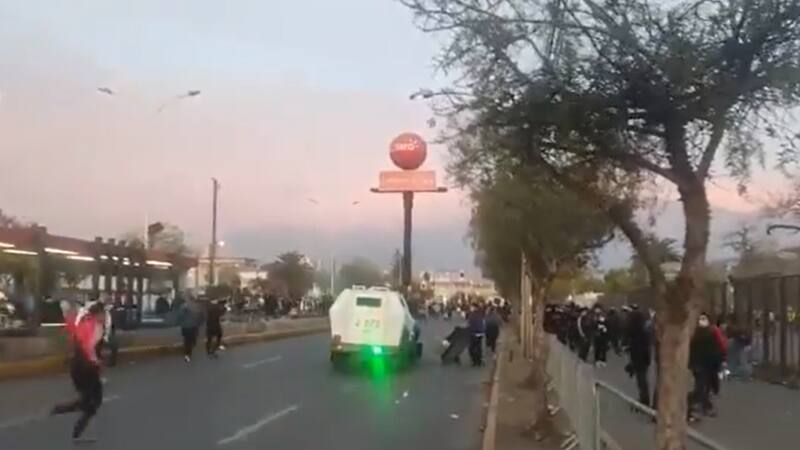 De acuerdo a Carabineros, un grupo de personas intentó ingresar -nuevamente- por los accesos dispuestos en Avenida Grecia sin contar con su entrada, lo que motivó el accionar de personal de Control de Orden Público (COP) de Carabineros con carros lanzaguas.
