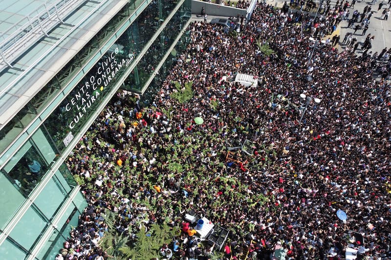 La gran cantidad de personas que acudió a la convocatoria en el frontis del Teatro Municipal de Las Condes provocó cortes de calles, la suspensión del tránsito y el cierre de la estación El Golf del metro.