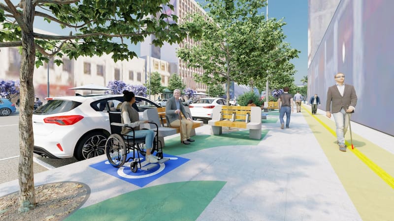 Entre las novedades del diseño habrá cruces peatonales a nivel con pictogramas para personas con Trastorno del Espectro Autista (TEA), rebaje de las soleras y del pavimento hasta el nivel de calzada para permitir un cruce peatonal cómodo, en especial para personas que se movilizan en sillas de rueda.