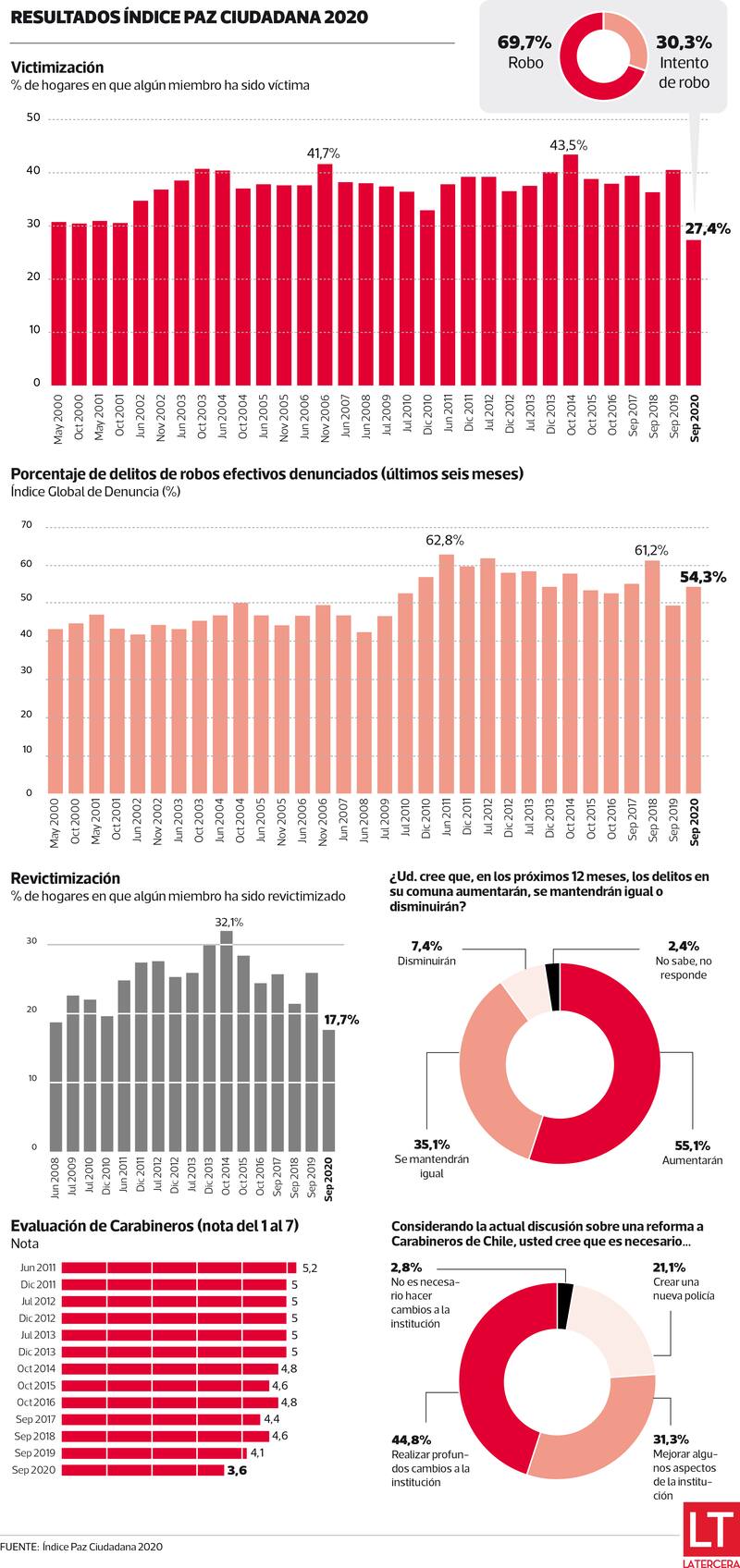 Índice Paz Ciudadana 2020: Victimización registra nivel más bajo en la historia del sondeo y cae evaluación de Carabineros