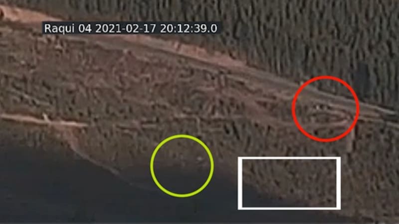 Hay un punto clave para el defensor en el video, lo que quedó registrado en el apartado “captura 5” del informe. “A las 20:04:26 se detecta un elemento de interés que se desplaza entre fotogramas en el ingreso del camino forestal perpendicular a la ruta P40 que une Arauco con Lebu por la costa. Se diferencia el elemento con un círculo rojo. Al costado derecho de la captura”.