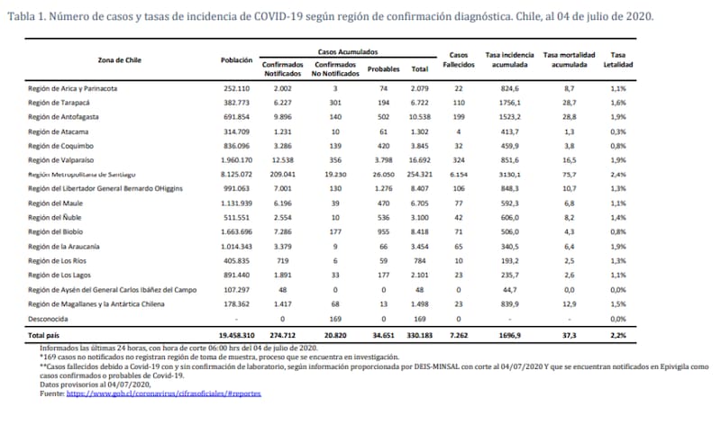Hoy, el informe epidemiológico reveló que el total de decesos debido a Covid-19 con y sin confirmación de laboratorio -según información del DEIS-Minsal y con una fecha de corte al 4 de julio-, alcanzó los 7.262. Es decir, 954 casos más que los informados por el Minsal el día de hoy.