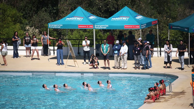 Este sábado, autoridades de gobierno dieron el vamos a la temporada de verano en la Región Metropolitana con la apertura de la piscina Tupahue ubicada en el Parque Metropolitano de Santiago (Parquemet).