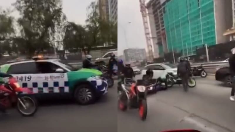 El hecho ocurrió cuando un numeroso grupo de motociclistas, que participaba en una conmemoración, rodeara y golpeara el vehículo fiscal.