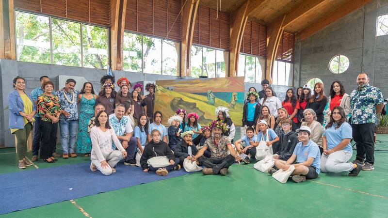Es el mediodía del miércoles 17 de abril y en el Liceo Aldea Educativa Rapa Nui hay alumnos representantes de los cuatro establecimientos educacionales de Isla de Pascua. A ellos los acompañan sus respectivos directores, el alcalde Pedro Edmunds Paoa, el delegado presidencial provincial, concejales, la directora de Educación comunal, representantes del directorio de Ma´u Henua y personeros de Latam, entre otros. El ambiente es de fiesta e incluye una presentación con música y bailes típicos.