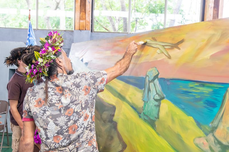 Resumidamente, el concurso denominado ‘Rapa Nui en las Alturas’ es una iniciativa donde los estudiantes de los diferentes liceos y escuelas tendrán poco más de un mes para presentar su idea de diseño, todos acompañados técnicamente por el artista local Te Pou Huke, quien durante el lanzamiento de la competencia pintó un lienzo con una imagen característica de la isla. “Es una gran alegría poder acompañar a los niños en este proceso”, señaló. Con su participación y asesoría se espera conectar el arte con la historia local.