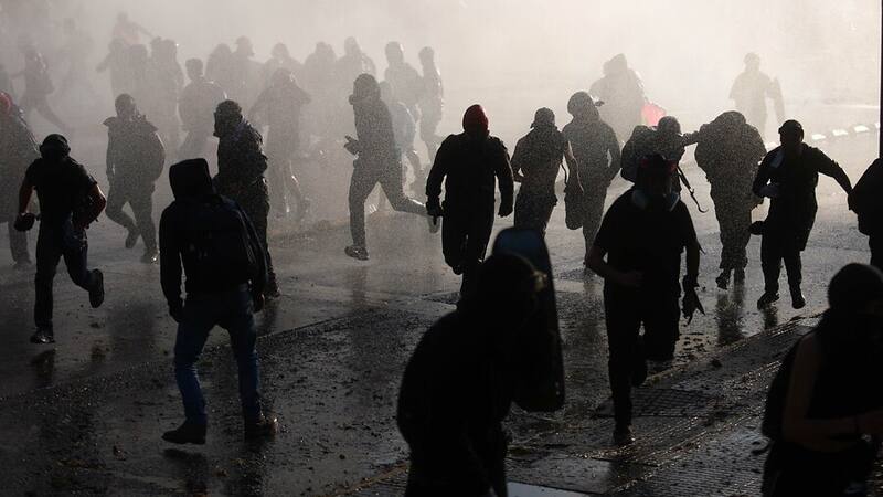 Intentaron linchar a funcionario de Carabineros durante disturbios en el centro de Santiago