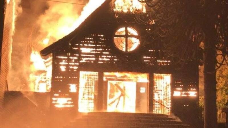 Investigan origen de incendio que destruyó iglesia católica en La Araucanía