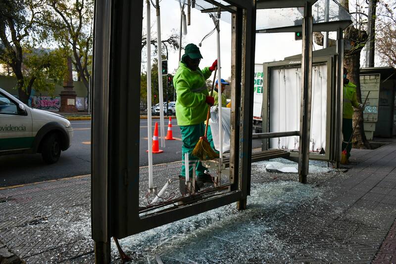 En Providencia además hubo destrucción de mobiliario urbano de la comuna.