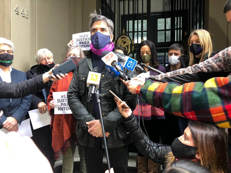 Esta mañana el padre de Antonia, Alejandro Barra, en compañía de las diputadas Maite Orsini, Marcela Sabat, Gael Yeomans, Paulina Núñez y sus pares Gonzalo Fuenzalida y Marcelo Díaz, presentó el proyecto de ley #JusticiaParaAntonia en la Plaza de Armas de Santiago.