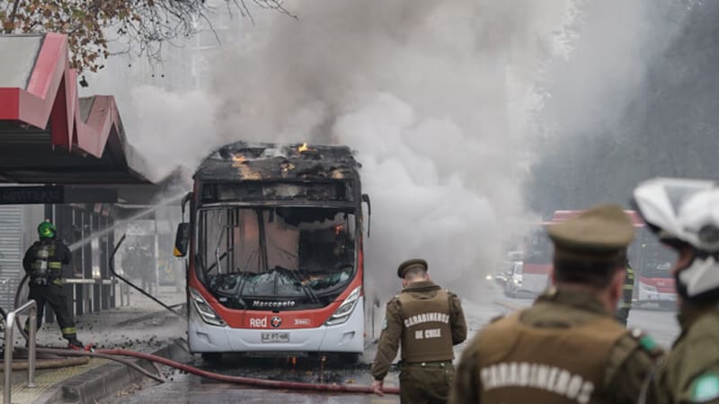 Este lunes un grupo de desconocidos vestidos de overoles blancos pararon un bus del transporte público en la intersección de las calles Alameda con Ricardo Cumming, hicieron bajar al chofer y a los pasajeros, rociaron la máquina con líquido acelerante y le prendieron fuego. Tras los hechos, fue detenido un adolescente de 16 años y estudiante del Liceo de Aplicación.