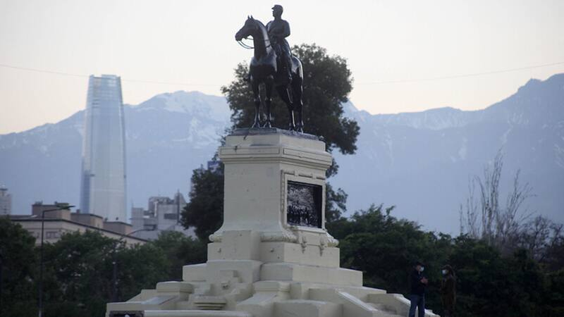 Alrededor de las 2.00, y durante más de dos horas, una pequeña cuadrilla de cuatro personas se encargó el domingo pasado de dar la última mano de pintura al monumento del general Manuel Baquedano, ubicado en Plaza Italia, poco antes de que la obra -inaugurada en 1928- volviera a ser centro de las manifestaciones por el aniversario del 18 de octubre.