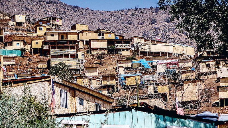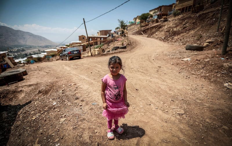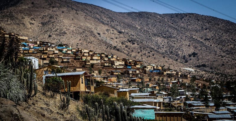 El calor de este miércoles, el segundo de febrero, abrasa en Santiago. El termómetro marca 31° Celsius, pero en los terrosos cerros de Lampa, al norponiente de la Región Metropolitana, el sol parece estar aún más cerca. Sofoca, quema. El clima no es tropical, pero al final de la calle 18 de Septiembre aparece algo así como una favela. Son cientos de casas, algunas tipo palafito, ordenadas de manera irregular y aunque a no tienen el colorido de los precarios y masivos asentamientos brasileños, guardan bajo sus techos oxidados las mismas carencias.