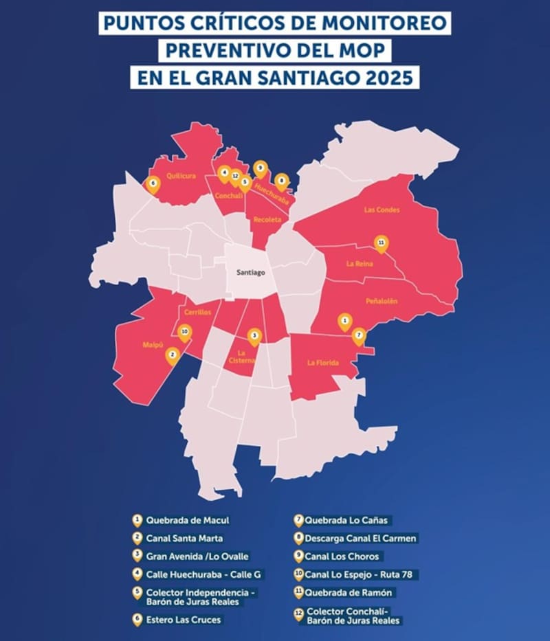 Esto en el marco de las obras preventivas que se realizaron en el plan de invierno, entre las cuales destacan la limpieza de cauces y construcción de obras de aguas lluvias en varios puntos críticos de la RM: Maipú, San José de Maipo, La Reina, Lampa, Melipilla, Talagante y Pudahuel, entre otras.