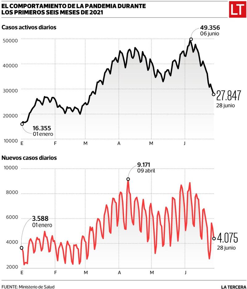 Con el correr de los meses y el factor estacional de por medio, Chile reportó una drástica baja de la circulación viral. No duró mucho. Si 2021 se perfilaba como el año en que se comenzaría a superar el virus gracias a las vacunas -elaboradas en tiempo récord-, la primera mitad del año ha demostrado que la meta aún está lejos y que no será fácil de alcanzar solo con medidas farmacológicas.