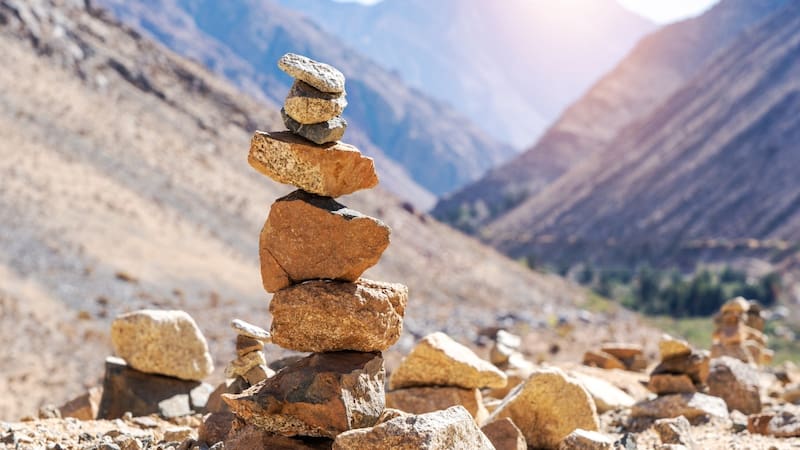 Los apachetas o cairn, son montículos de piedras apilados que se mantienen erguidos por la forma y el equilibrio en que se posicionan las rocas. Son parte de una práctica antigua realizada por diferentes pueblos indígenas para demostrar agradecimiento a la naturaleza o deidades de la zona.