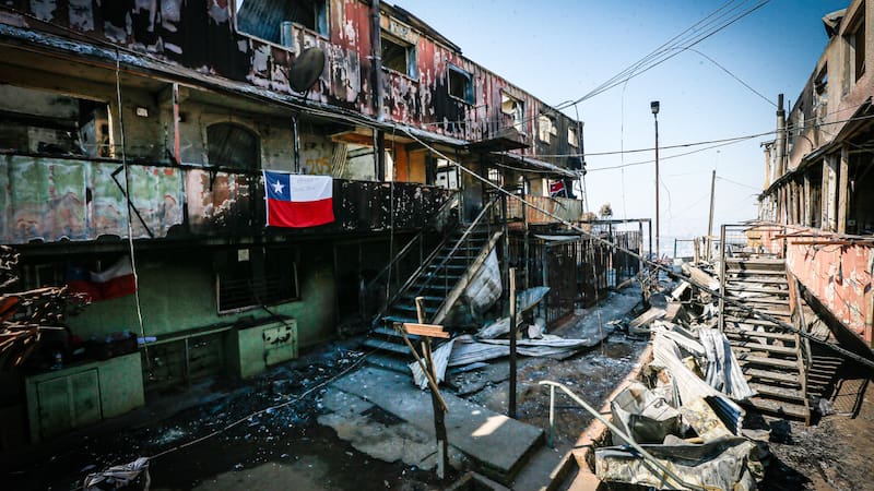Poco queda de la población Ríos de Chile, en la localidad de Lirquén, tras el devastador incendio que consumió casi la totalidad del complejo de bloques, parte de la denominada “zona cero” de los incendios en la Región del Biobío.