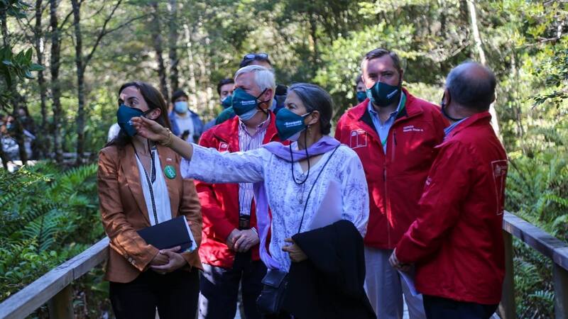 La ministra de Agricultura, María Emilia Undurraga, el intendente de Los Lagos, Carlos Geisse, y la representante de la Organización de las Naciones Unidas para la Alimentación y la Agricultura (FAO) en Chile, Eve Crowley, visitaron el Monumento Natural Lahuen Ñadi, para oficializar el inicio del proyecto “+Bosques, juntos contra el Cambio Climático”.