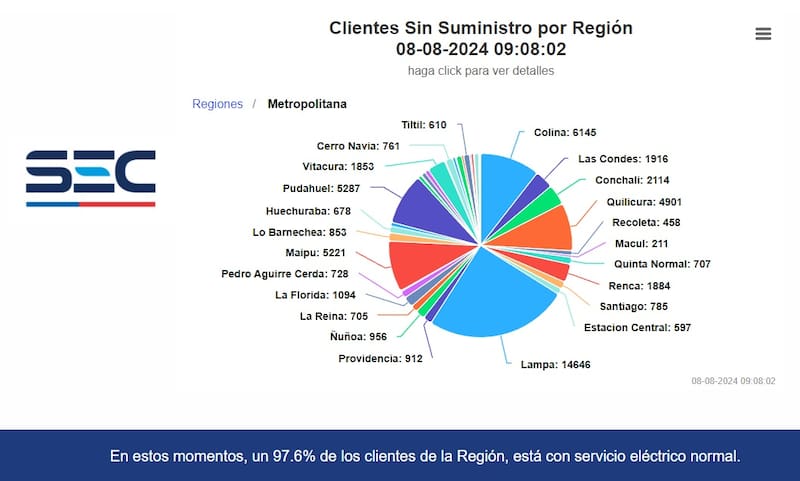 Lampa, una comuna rural ubicada al norte de la región sigue siendo el municipio más afectado de acuerdo a las cifras que está actualizando la Superintendencia de Electricidad y Combustible (SEC) en su sitio web.