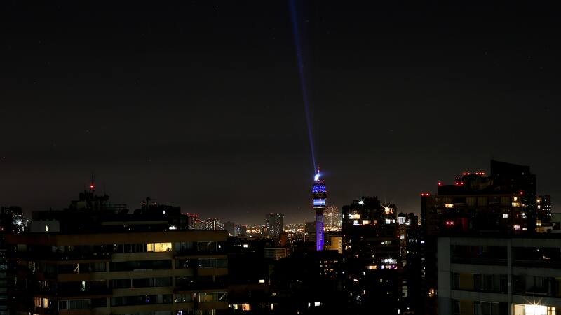 Con los espectáculos oficiales de fuegos artificiales suspendidos (porque los que se lanzaron en diferentes puntos de Santiago fueron no estaban autorizados), una de las atracciones prometidas era el show de luces que se desplegaría desde la emblemática Torre Entel.