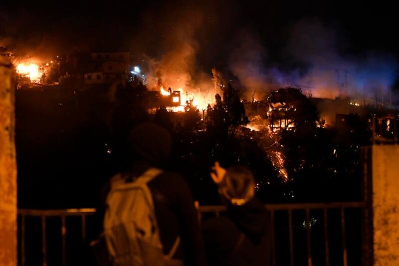 Por Cristóbal PalaciosLas imágenes del voraz incendio que afecta al cerro Cordillera en Valparaíso