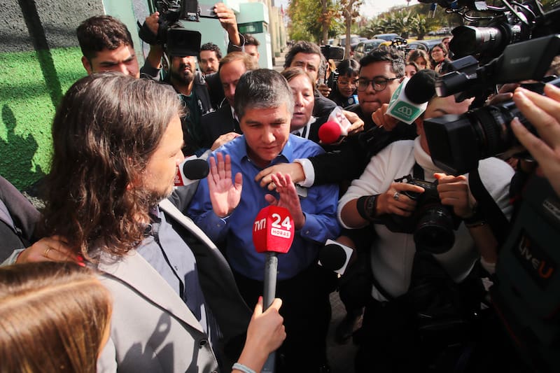 La idea era salir caminando de la cárcel, ingresar por un costado de la Defensoría Penal Pública, ubicada en una parte del Centro de Justicia, y luego salir a la explanada a enfrentar a los medios, en lo que sería su primera vocería desde que presentó su renuncia en La Moneda el 17 de octubre, luego de que se destapara que la Fiscalía Centro Norte se encontraba investigándolo por la denuncia de una subalterna de la Subsecretaría del Interior.